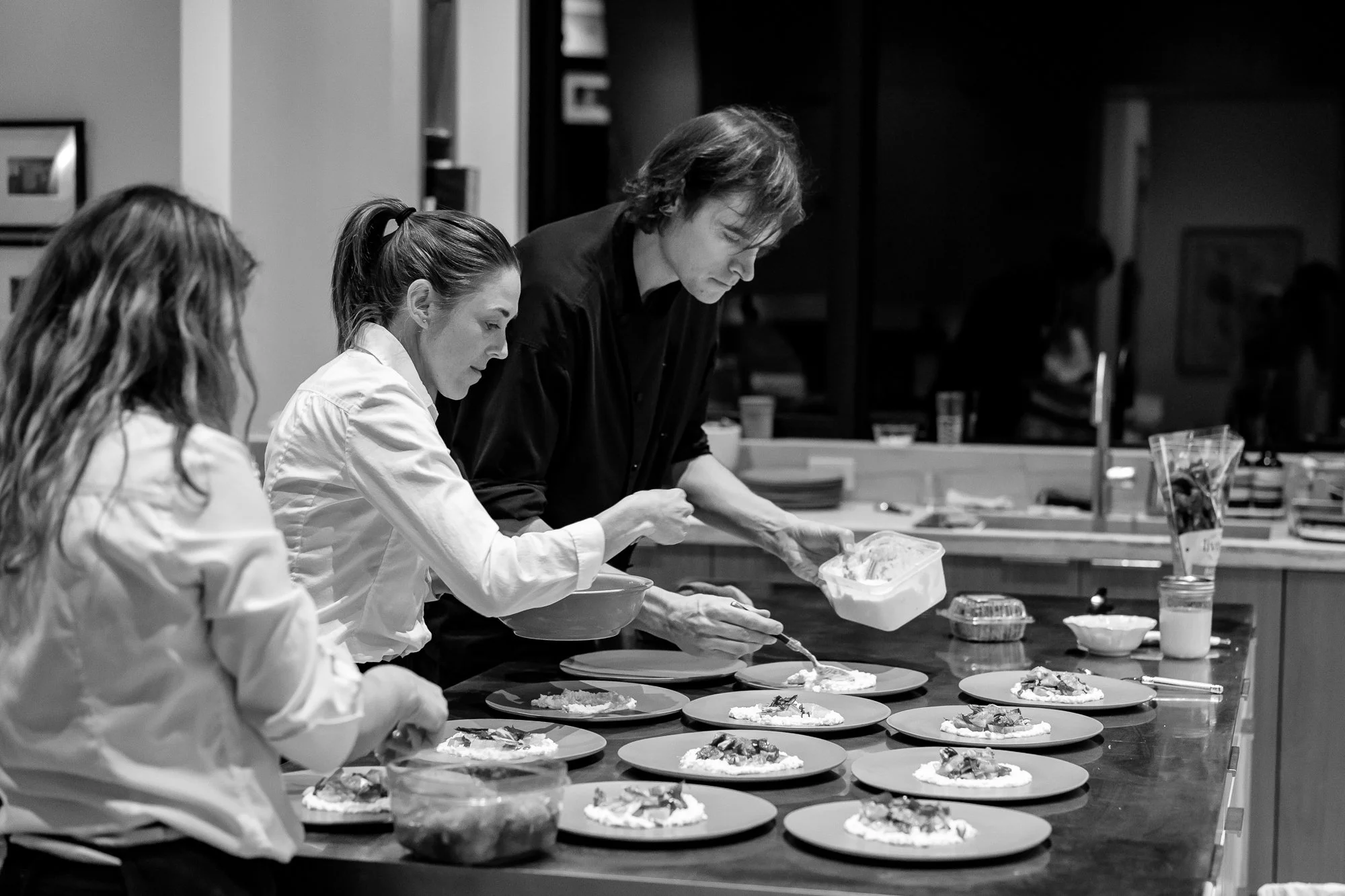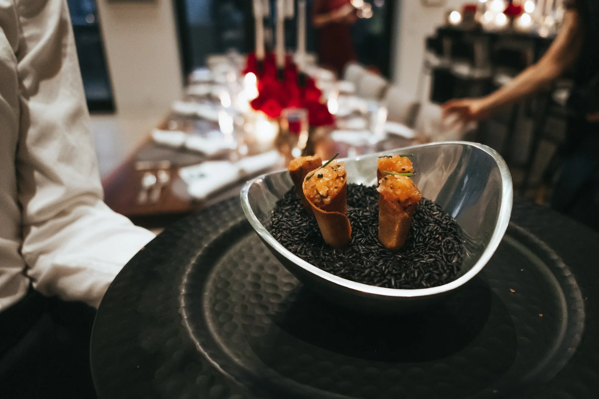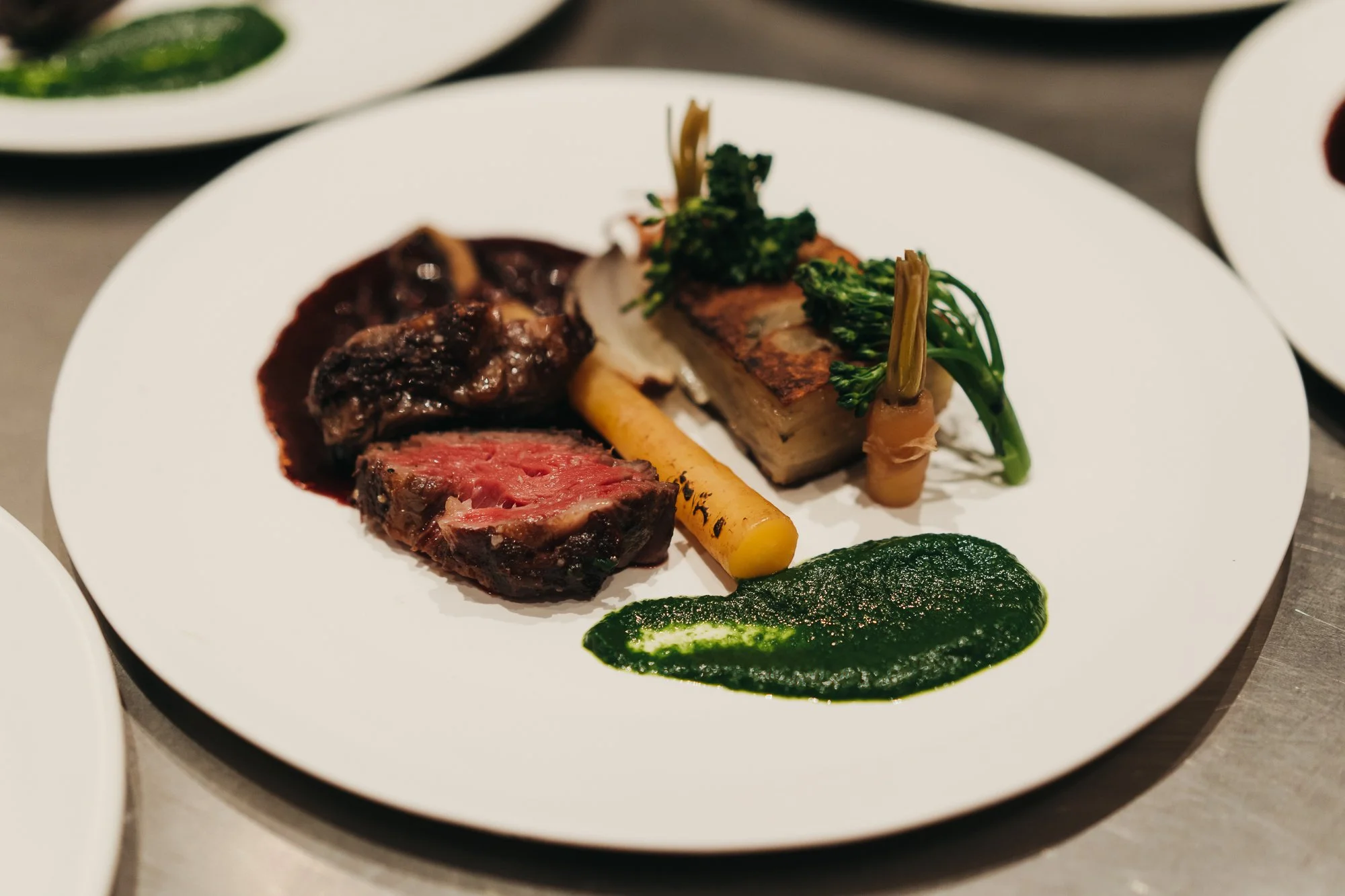 Appetizers got our taste buds going with oyster mushrooms, corn fritters and mini meat balls Asian style. Then followed delectable summer freshness, magical scallops, perfect Ora King salmon with its “bacon”, and flourless chocolate mini cakes with raspberries.